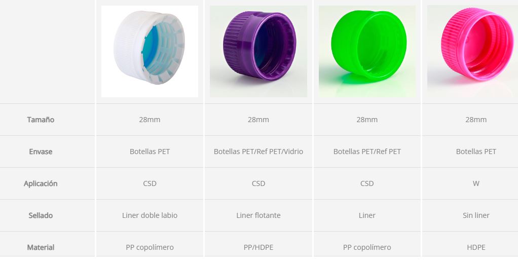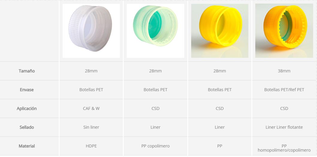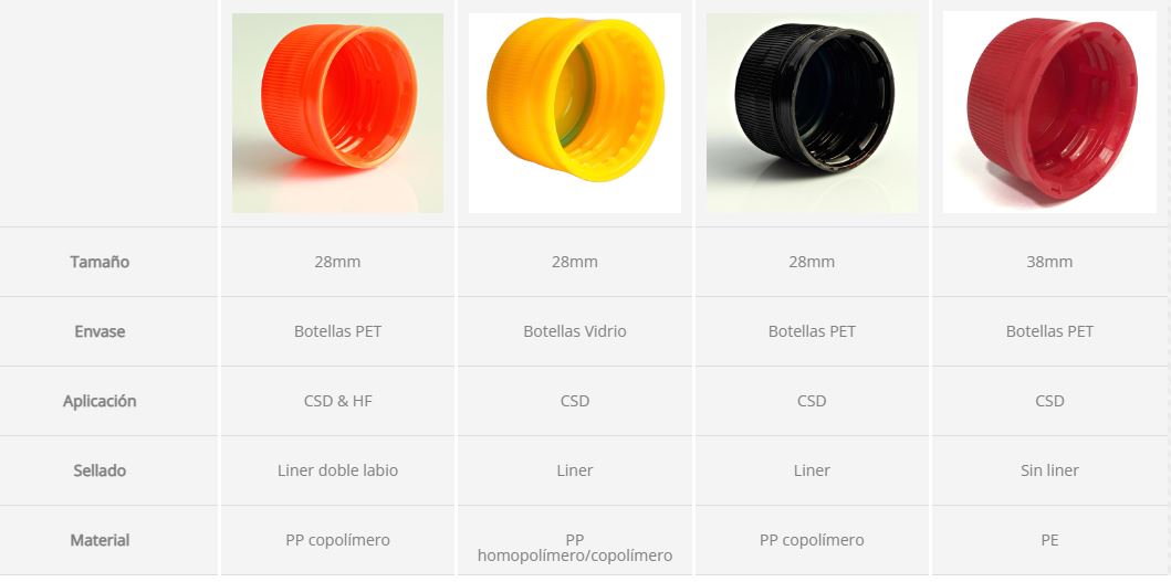 Tapas plásticas para botellas, ideales para bebidas, productos farmacéuticos, entre otros.